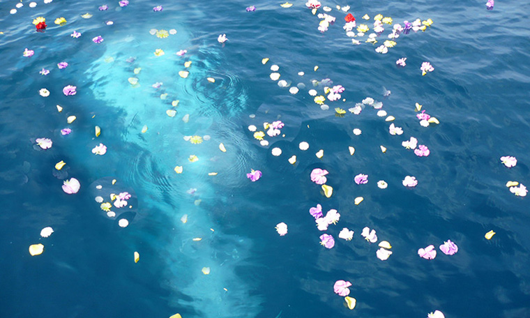 散骨後には、お花やお酒、水を海へ捧げ、黙祷を捧げます。ご遺族の想いとともに、静かな祈りの時間をお過ごしください。心を込めた最後のお別れを大切にいたします。